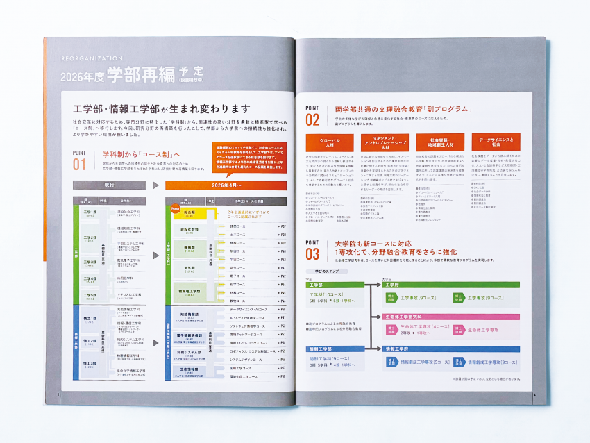 学校の魅力や理念を可視化。多様な読者へと伝わる情報整理とデザインで、オーダーメイドの冊子を制作します。